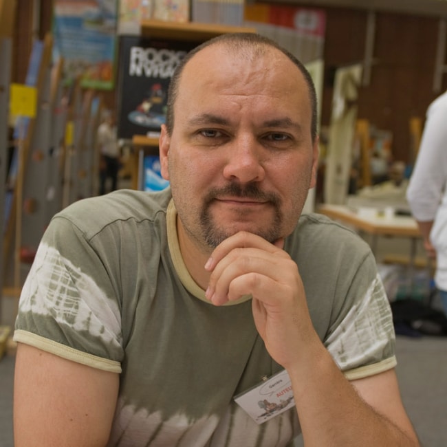 Marko, né en 1969 à Bordeaux, débute dans l’animation (Babar) avant de publier ses premiers albums en basque. Il signe ensuite plusieurs séries primées, dont Les Godillots chez Bamboo. En 2025, il crée l’affiche de la première édition de FestiBroy’Art.